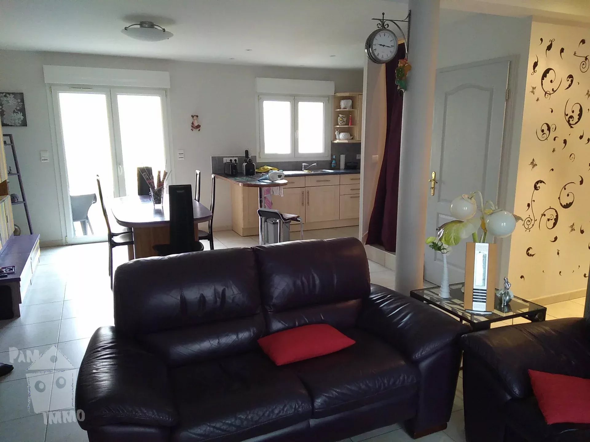 Pavillon F5 avec jardin à Pont-à-Mousson comprenant : une entrée avec placard, cuisine américaine équipée, séjour, 3 chambres, 1 grande pièce borgne, une salle de bains, deux wc, garage avec coin buanderie - Chauffage électrique - 98,72 m² - Loyer : 1100 € - Provisions sur charges : 20 € (régularisation annuelle) - DG : 1100 € - FA : 712 € TTC dont 162 € TTC pour etat des lieux - Classe énergie : D - Les informations sur les risques auxquels ce bien est exposé sont disponibles sur le site Géorisques : www.georisques.gouv.fr.
